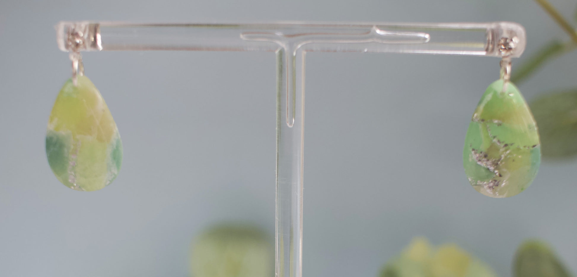 From the Silver Fern Collection, these medium-sized rounded teardrops capture the vibrant energy of lush greenery in motion. Translucent polymer clay layers in sage, grassy green, and vivid lime shimmer with mica’s natural sparkle, while flecks of silver foil glint like sunlight through fern fronds. The translucency of the clay allows the layers to subtly reveal themselves, creating depth, texture, and a luminous, stone-like effect.