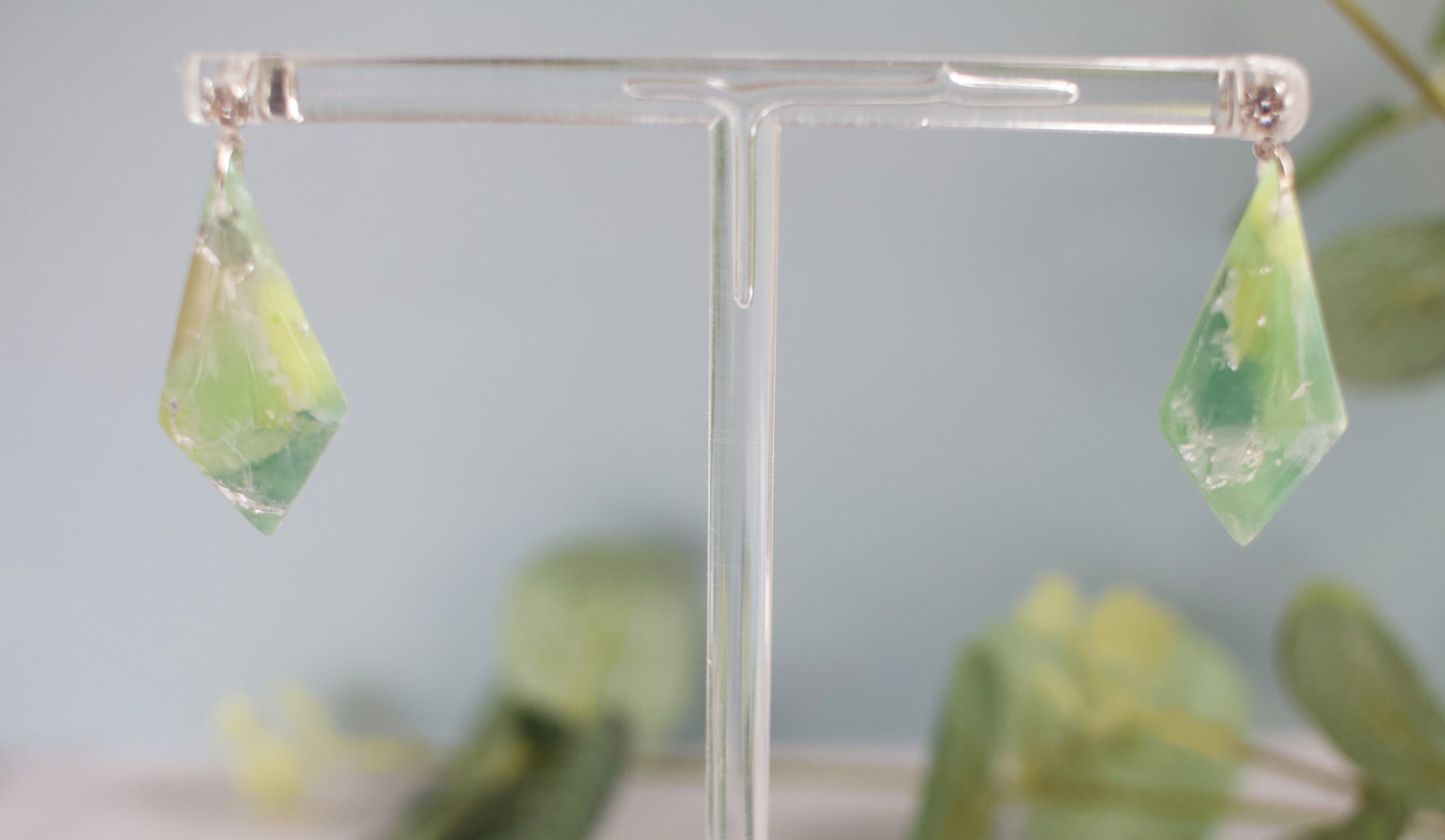 Inspired by the delicate strength of woodland ferns, these elegant kite-shaped drops from the Silver Fern Collection bring a touch of natural radiance to your look. Each pair is hand-sculpted from translucent polymer clay infused with shimmering mica powders in three shades of green — sage fern, fresh meadow, and vibrant lime. Silver leaf is carefully layered through the clay, catching the light like morning dew on foliage.