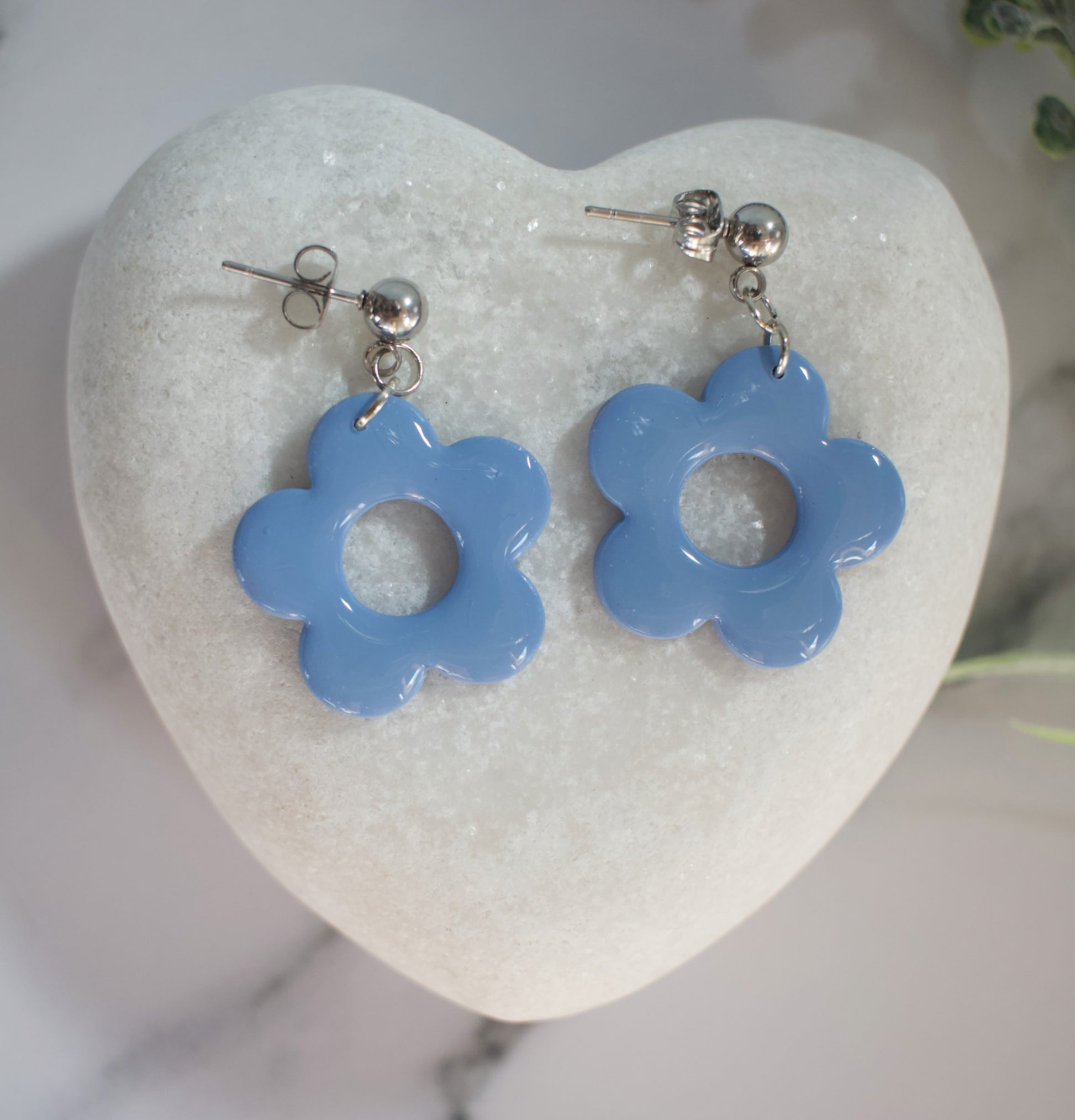 From the Dawn Tones Collection, these Gloss Flower earrings in muted grey blue evoke the calm of sea and sky at dusk.